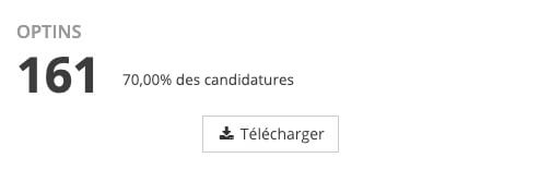 Cliquez sur l'onglet Télécharger du bloc "Optins" pour avoir un export CSV que vous pourrez très facilement importer sur votre gestionnaire d'envoi d'emailing.