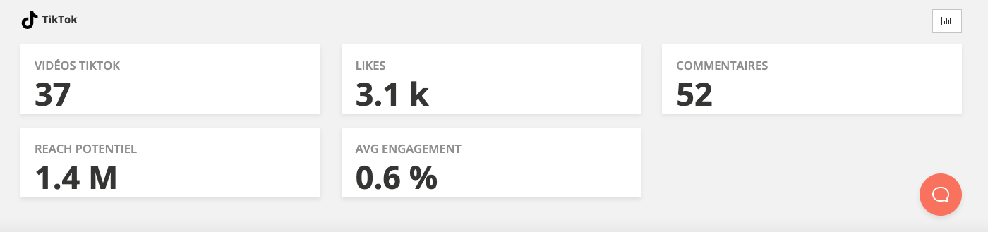 Vous pouvez retrouver les performances de votre campagne dans l’onglet “ Publications” et “Performances”. Ainsi, vous pouvez analyser le nombre de vidéos collectées, les likes, les commentaires mais aussi le reach potentiel et le taux d’engagement de vos campagnes TikTok.
