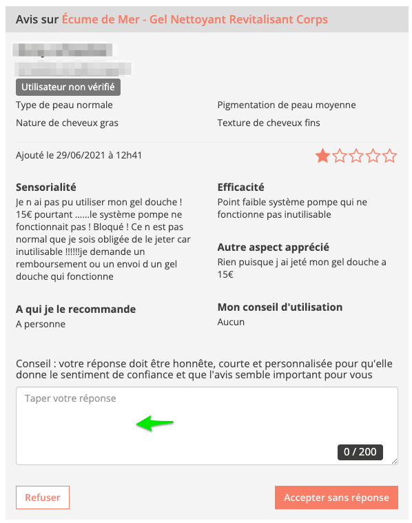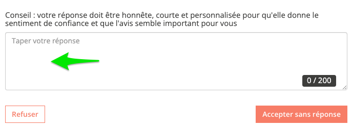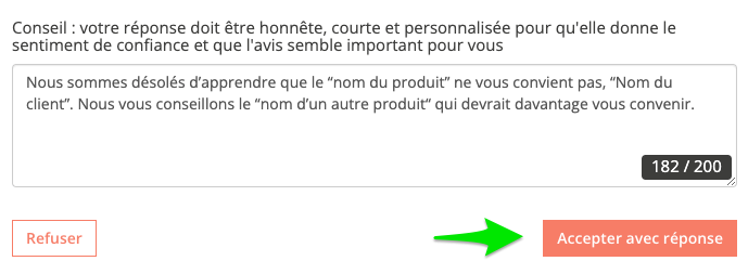 Vous pouvez accepter un avis sans donner de réponse. Il sera publié sur votre site e-commerce via le module.