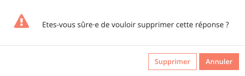 - Supprimer, si vous souhaitez supprimer votre réponse. Une popup s'affichera pour confirmation de la suppression. Cliquez sur le bouton Supprimer.