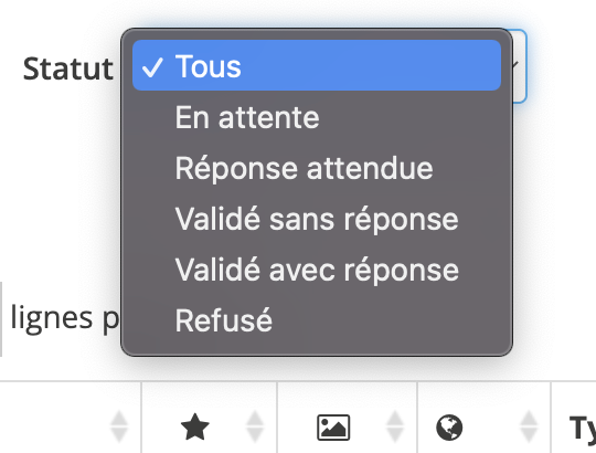 Chacune de vos actions peut être modifiée ultérieurement. Par exemple, en acceptant avec une réponse un avis déjà refusé, le statut de celui-ci passera de "Refusé“ à "Validé" avec la date de la réponse publiée.