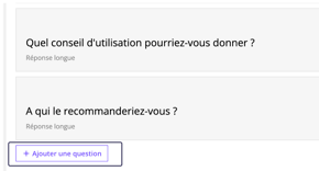 Pour ajouter des questions de votre choix, descendez en bas de la page et cliquez sur "Ajouter une question".