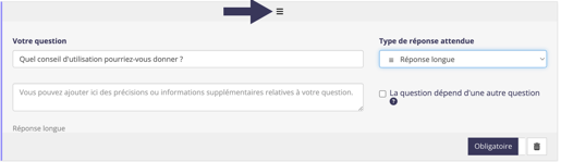 Pour changer l’ordre de questions, attrapez la case de la question et faites la glisser où vous la voulez.