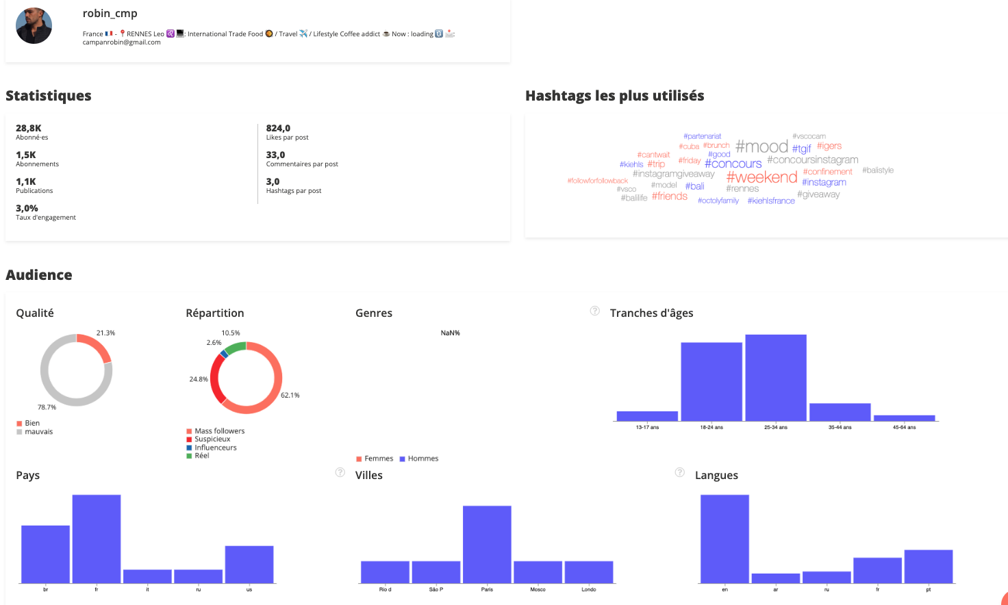 Pour choisir vos influenceurs, la sélection peut se faire par réseau social. Pour choisir des influenceurs qui s’engagent vraiment auprès de votre marque et qui sont des créateurs pertinents de contenus, vérifiez les indicateurs de performance de leurs posts :