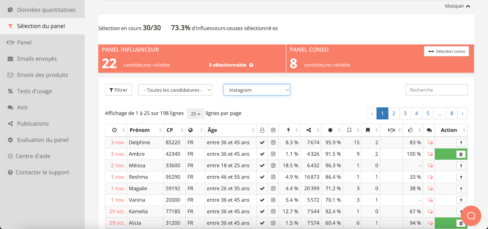 Lorsque vous sélectionnez votre panel d’influenceurs pour votre campagne produit, il est important que les résultats des influenceurs soient bons et que leur audience corresponde à votre cible.