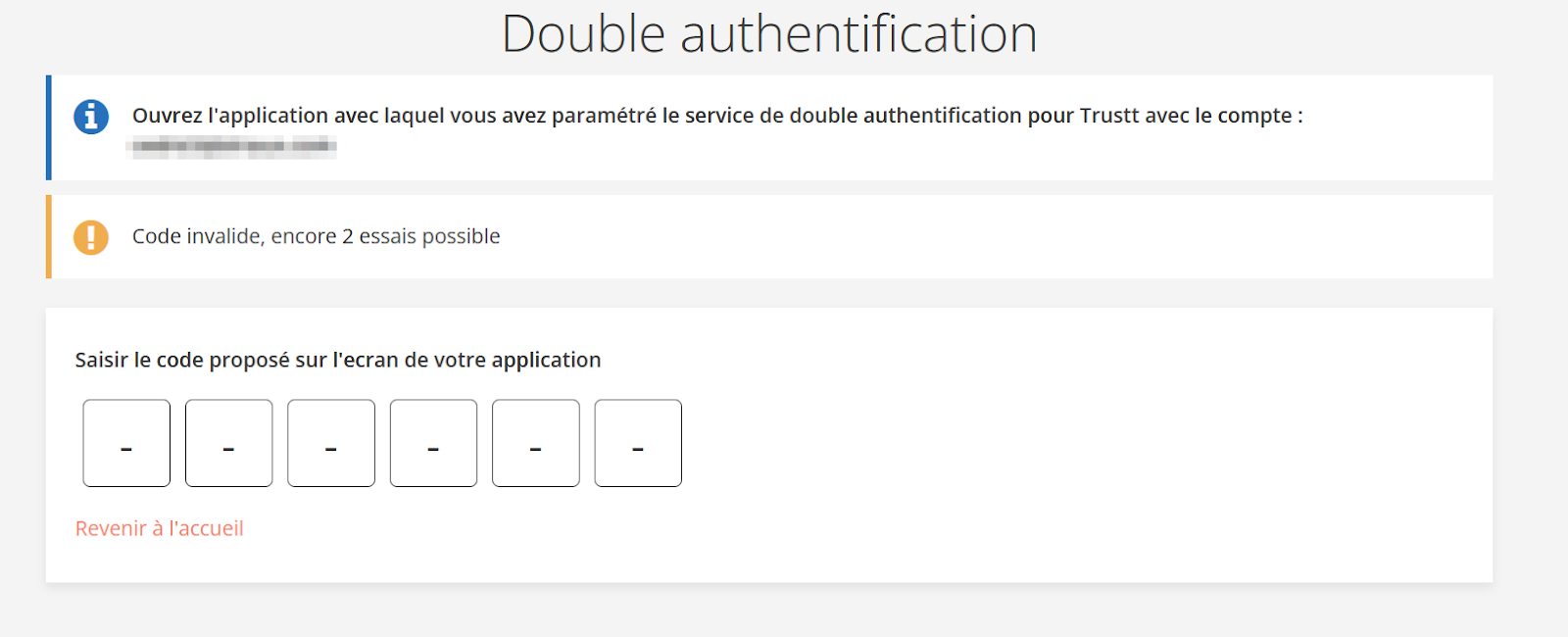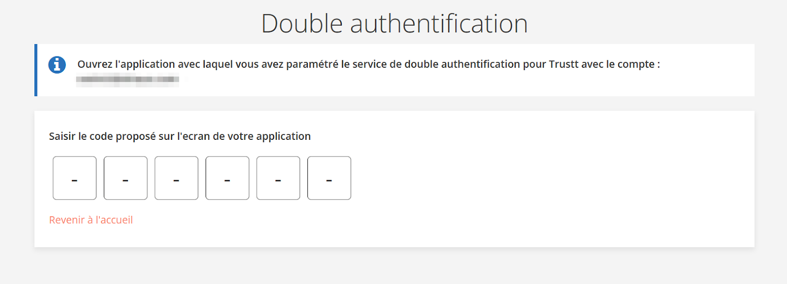 Quand vous aurez renseigné le dernier chiffre, le système va automatiquement vérifier la validité du code. Si celui-ci est correct, vous serez redirigé vers la page d’authentification à nouveau.